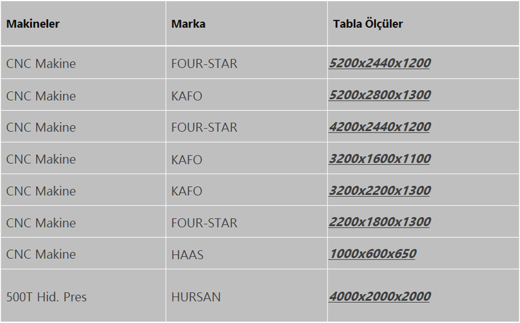 Ekipmanlarımız